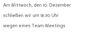 Montag bis Freitag 9:00 - 19:00 Uhr